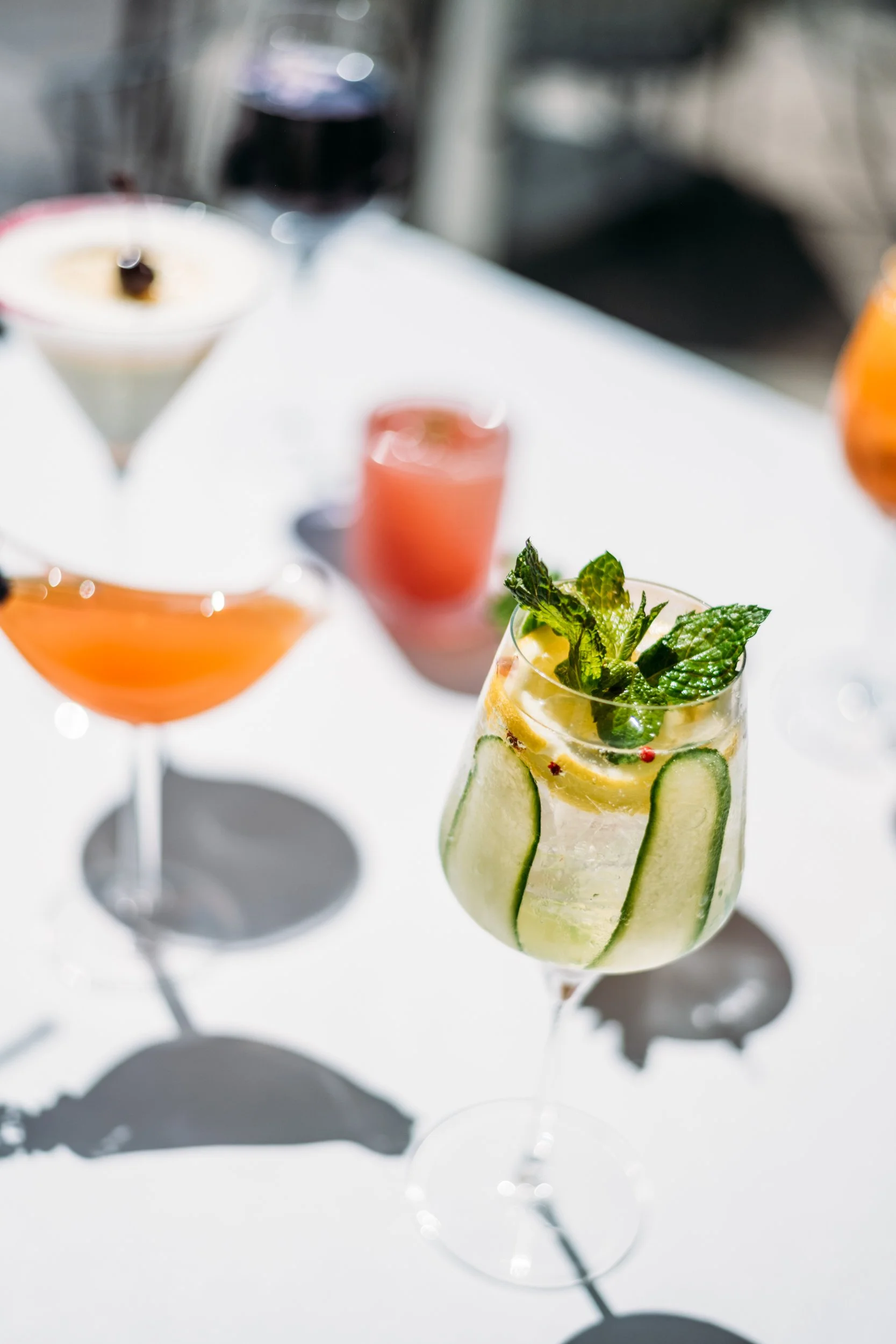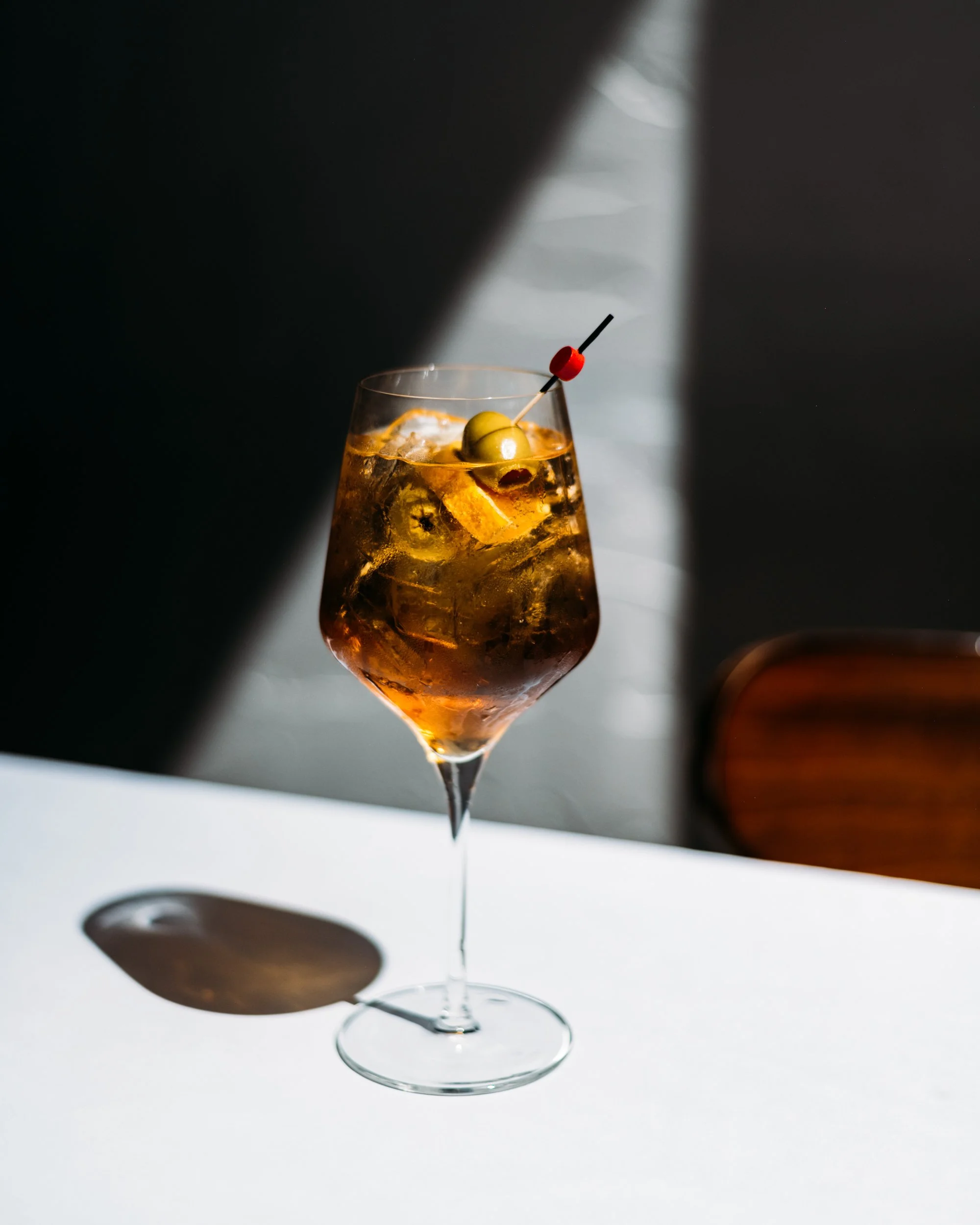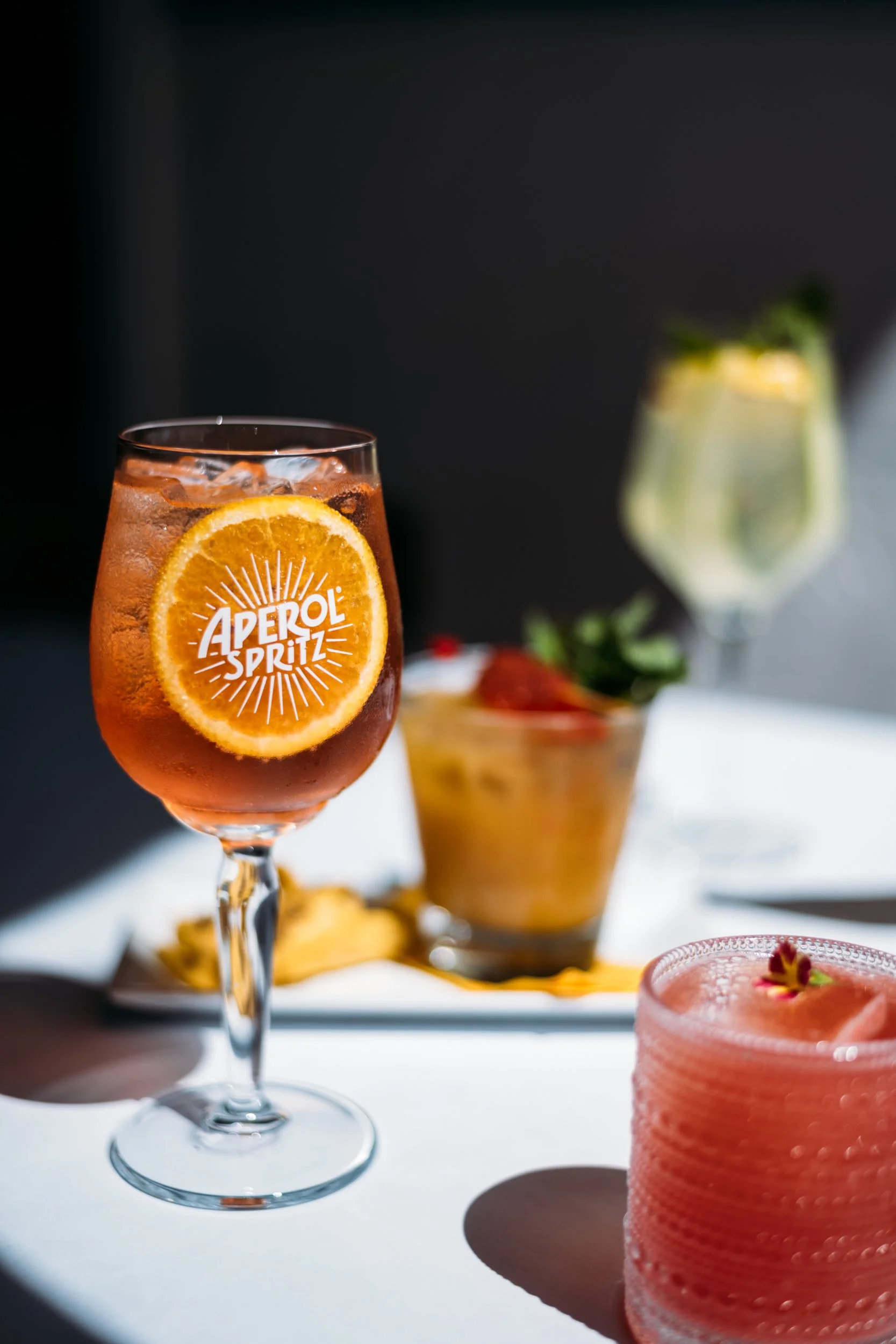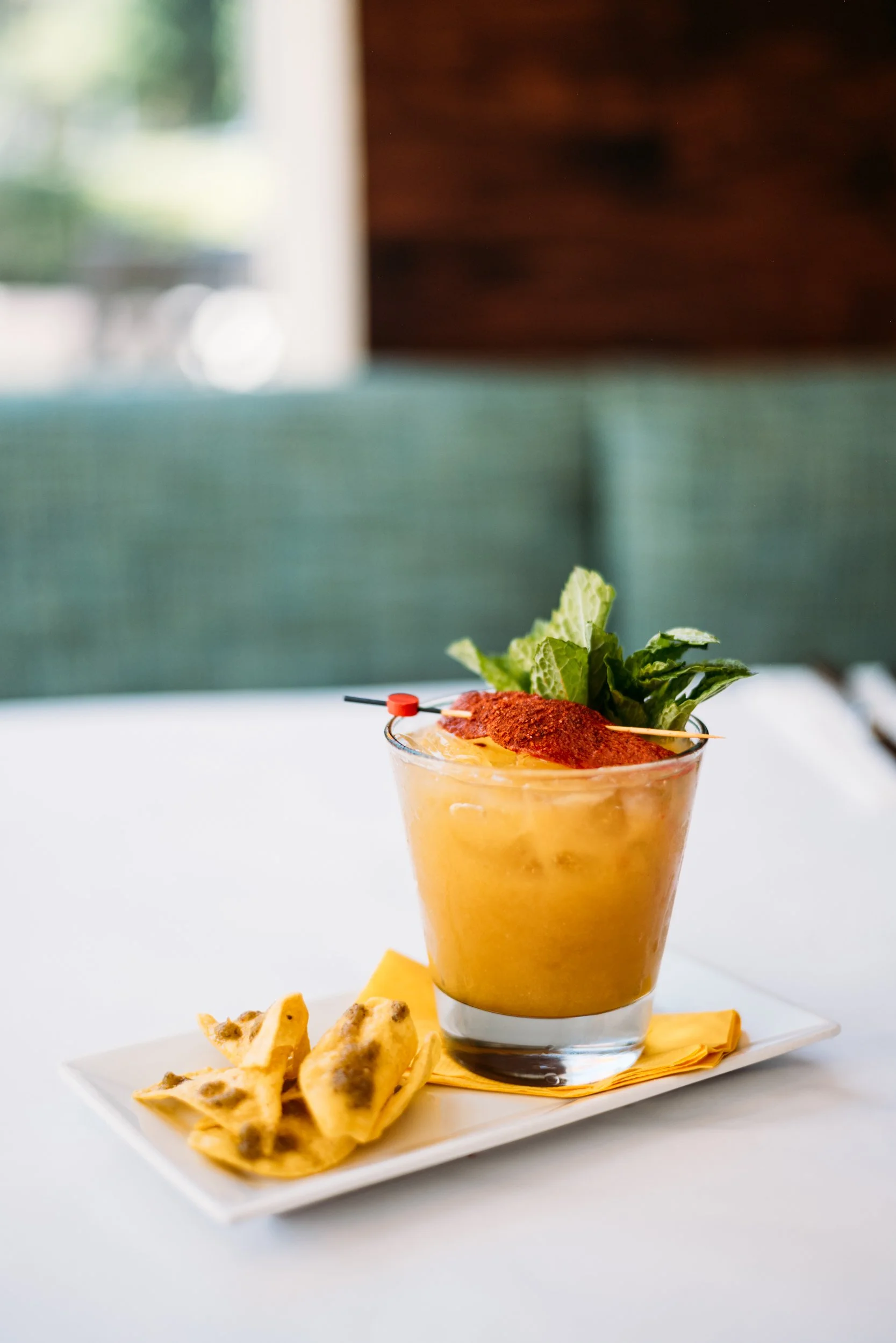 unique cocktail with orange garnish in beautiful ambiance brunch restaurant
